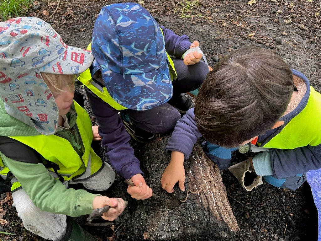 Open-ended creative and sensory pursuits build children’s language and social skills while the Forest Schools risk-benefit approach develops children’s attention, coordination and problem-solving skills. Whether tending to the garden, adapting to the weather, or engaging in practical activities outdoors, the children develop self-awareness and respect for all living things.