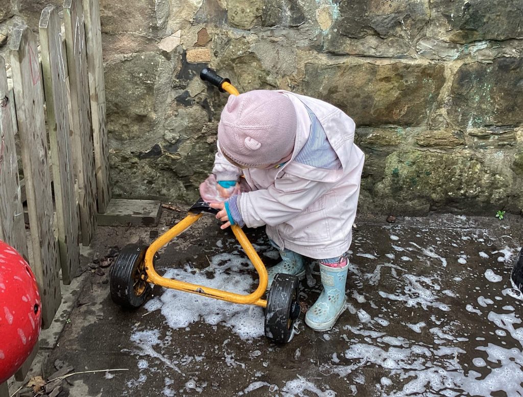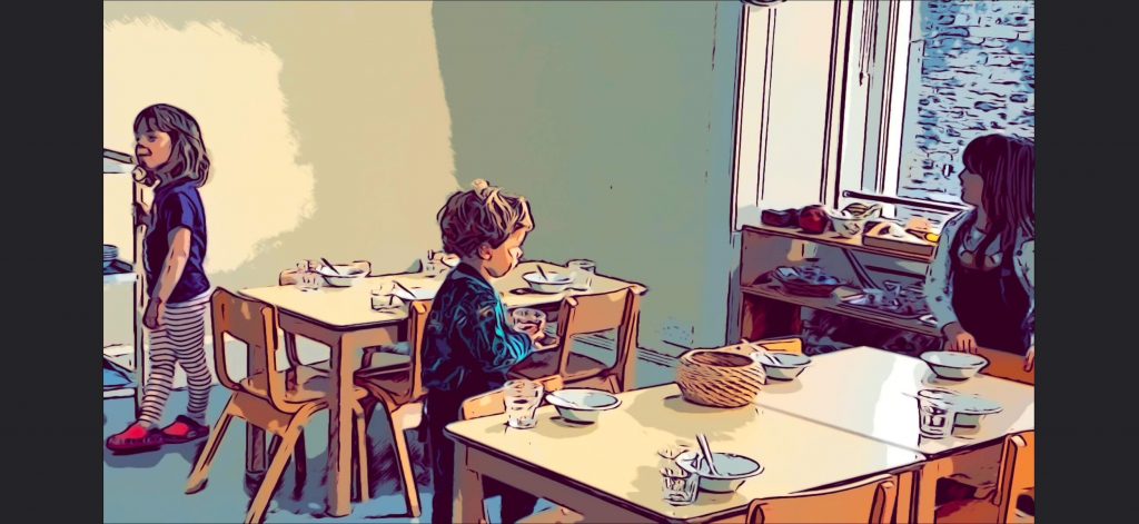 At the end of the day, the children have tea together, followed by outdoor play and calm activities until they go home.